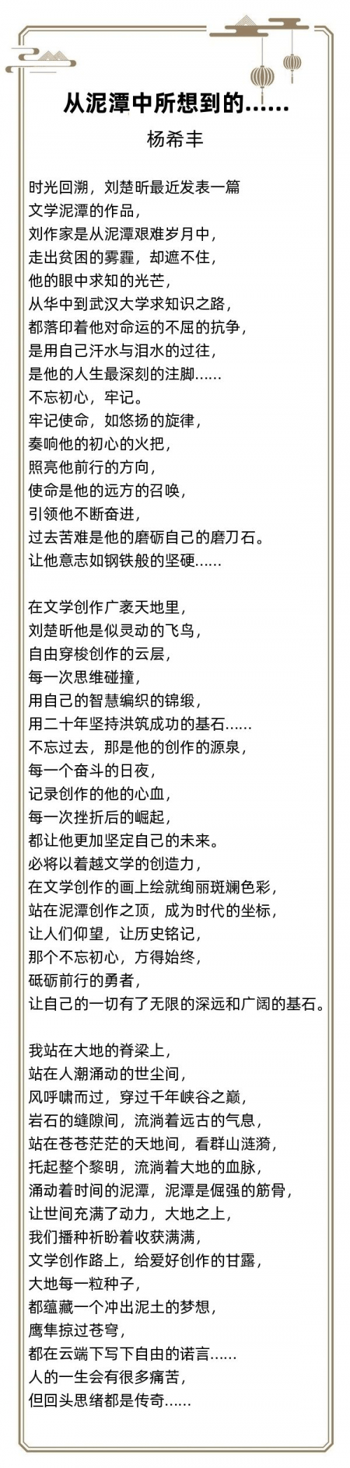 杨希丰,64岁,执业全科西医医师,喜爱散文做品,已经加入全国诗韵杯散文做品大赛获得获得全国铜,人气第三好成就,获得大雅古韵杯诗词做品二等,优良创做优良。