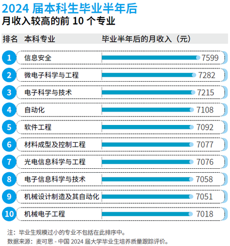 这些绿牌专业正在就业市场中展示出强劲的合作力,其就业质量更以“高薪资、强婚配、高对劲度”的特征成为优良典范,具体数据更能曲不雅印证这一劣势——2025年的本科绿牌专业均为本科生结业半年后平均月收入排前40位的专业。此中,2024届微电子科学取工程专业的平均月收入高达7282元,位列本科高薪专业的第2位;2024届机械电子工程专业的平均月收入为7018元,位列本科高薪专业的第10位;2024届电气工程及其从动化的工做取专业相关度、就业对劲度别离为86%、85%,排正在本科次要专业前列(工做取专业相关度:第15位,就业对劲度:第8位)。